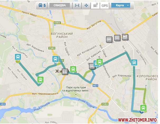 Минулого тижня на EasyWay було запущено GPS-дані громадського транспорту Житомира.