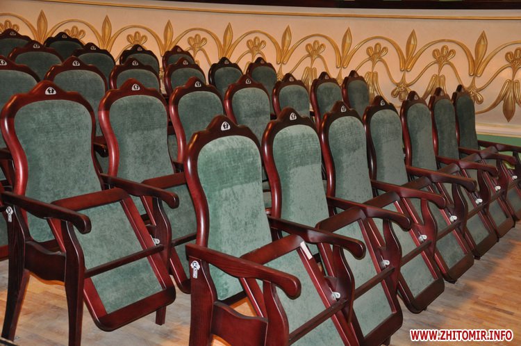 Зі слів генерального директора Житомирської обласної філармонії Петра Даценка, приміщення фактично створювалося заново – від заміни системи освітлення до повного відновлення сцени. Від колишньої концертної зали, по суті, залишилися тільки стіни. Будівельники наростили нові яруси у залі, прикрасивши кожен із них гіпсовою ліпниною, пофарбованою в золотистий колір. В якості розпису на стелі – відображення живописних полотен. Стіни ж оздоблені венеціанською штукатуркою, що поліпшує акустичні властивості цієї зали. Більше того, навіть нові крісла та їх оббивку добирали так, аби вони жодним чином не впливали на чутність звуків у різних частинах зали. Зрештою, ремонтні роботи довелося затримати на два місяця. Адже значного оновлення потребувала сцена. Там повністю замінили підлогу.