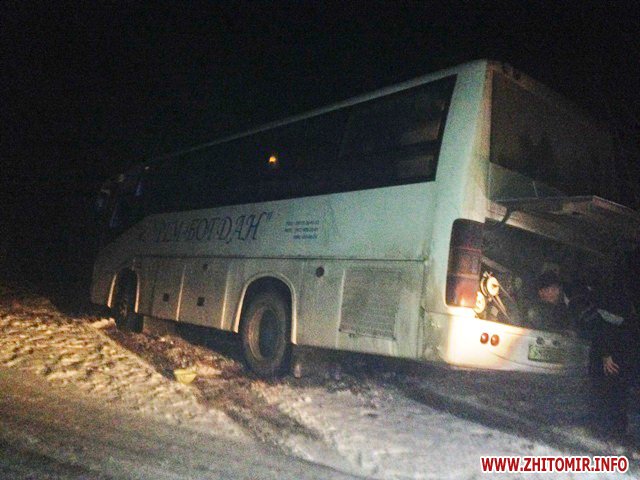 Также 10 декабря около 17:10 в селе Гайки Володарск-Волынского района Житомирской области съехал в кювет рейсовый автобус «Рим-Богдан», следовавший по маршруту Житомир – Екатериновка, - сообщает пресс-служба. Водитель не справился с управлением на скользкой дороге.