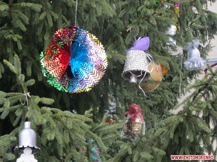 Як повідомляв Житомир.info, минулого року такими «екологічними» іграшками з пластику, тканини і, навіть, гарбузових зернят прикрасили 5-метрову ялинку на Михайлівській.