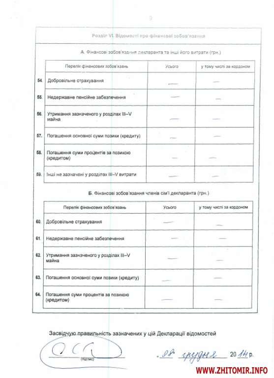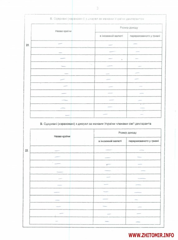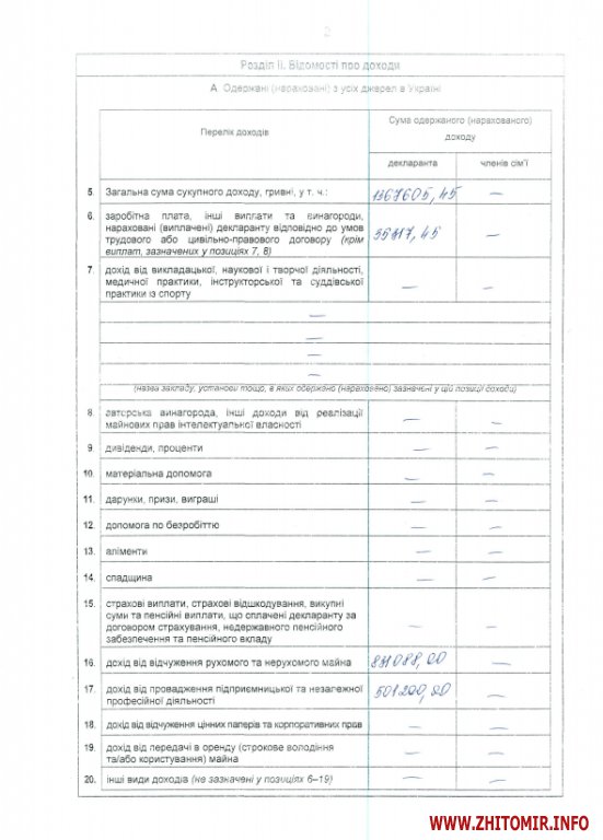 Доход Житомирского губернатора за 2013 год составил 1 млн. 367,6 тыс. грн., большую часть из которого составляет доход от отчуждения движимого и недвижимого имущества - 831 тыс. грн. и доход от предпринимательской деятельности – 501 тыс. грн. Заработная плата составила всего 35,3 тыс. грн.