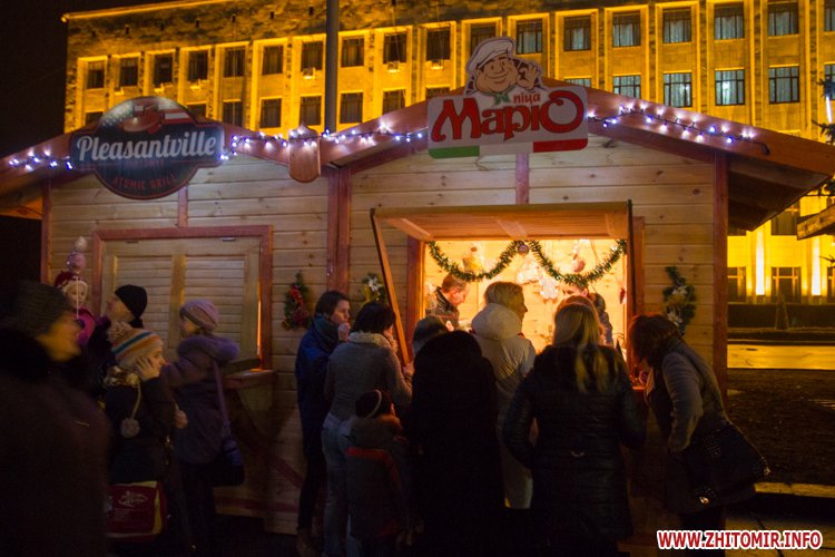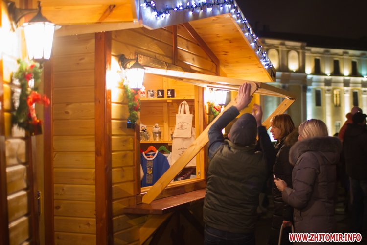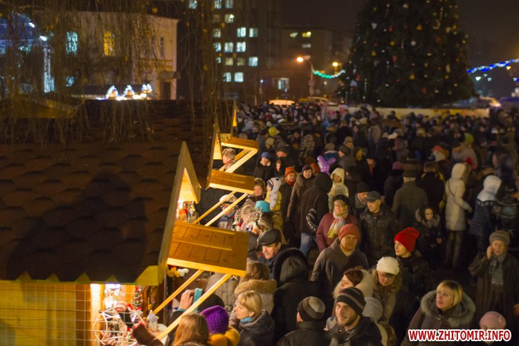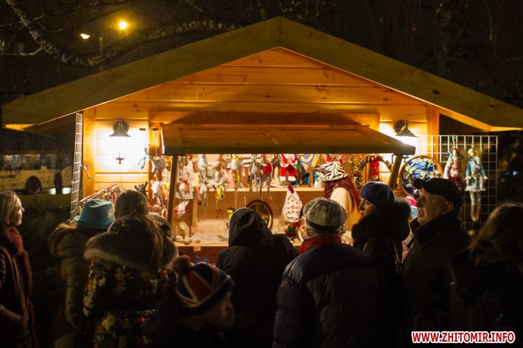 Цього ж вечора на майдані Корольова запрацював новорічний ярмарок. У дерев’яних будиночках житомиряни можуть придбати сувеніри, вироби місцевих майстрів та національну символіку. Ярмарок буде працювати до 15 січня, с 14.00 до 22.00 (7-8 січня, 13-14 січня 2015 року - з 14.00 до 03.00).
