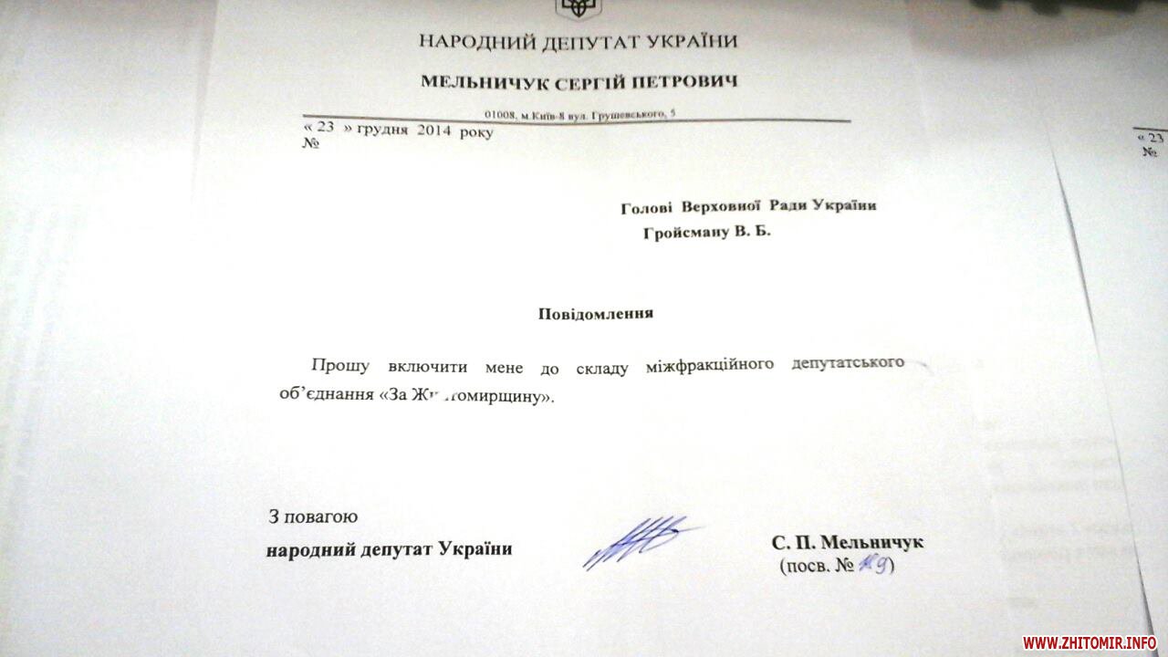 «Відтепер нас 11. Вітаємо нових членів міжфракційного об'єднання "За Житомирщину"», - написав народний депутат та показав заяви колег про вступ.