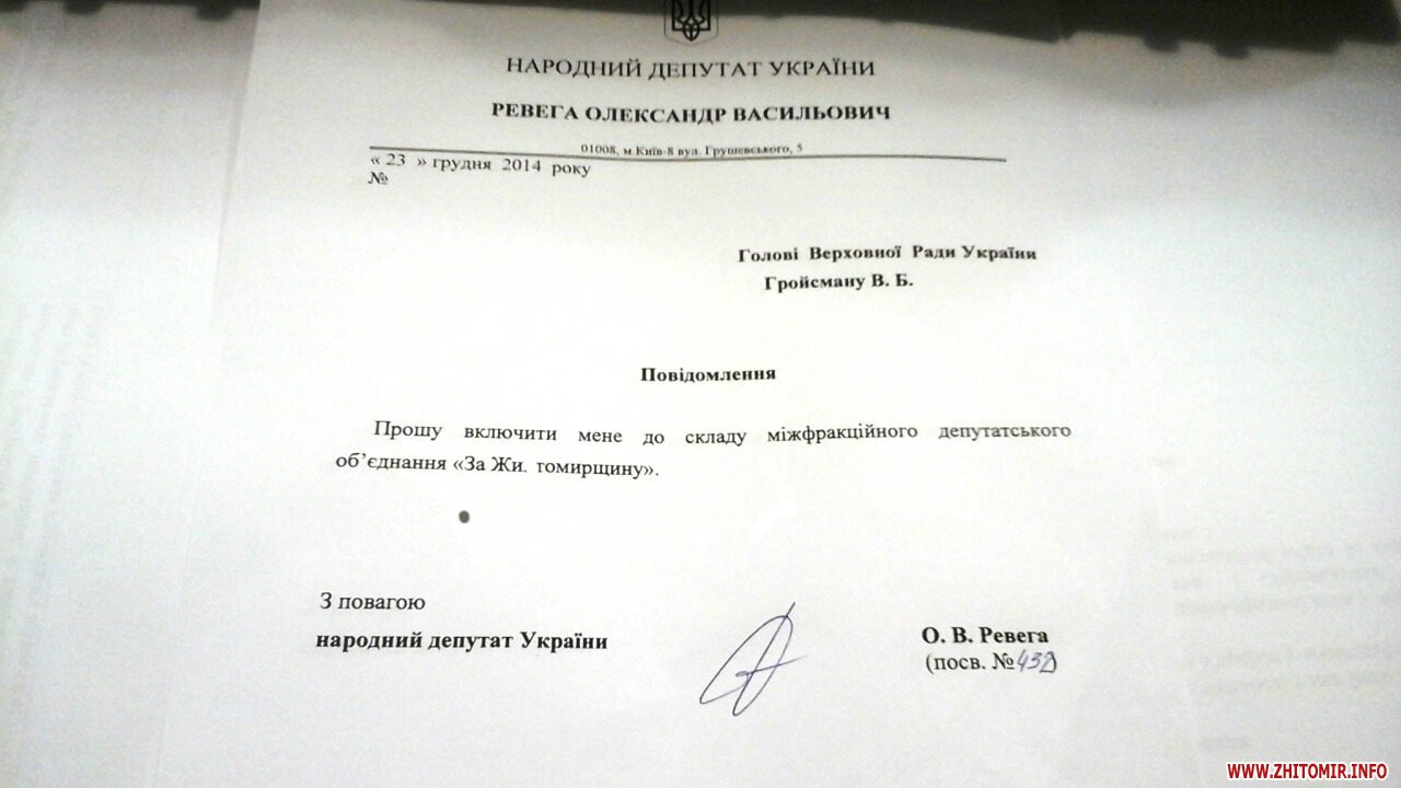 Нагадаємо, міжфракційне об’єднання «За Житомирщину» було створене на початку грудня, до його складу увійшли 9 народних депутатів. Під час зустрічі в облдержадміністрації 16 грудня, представники