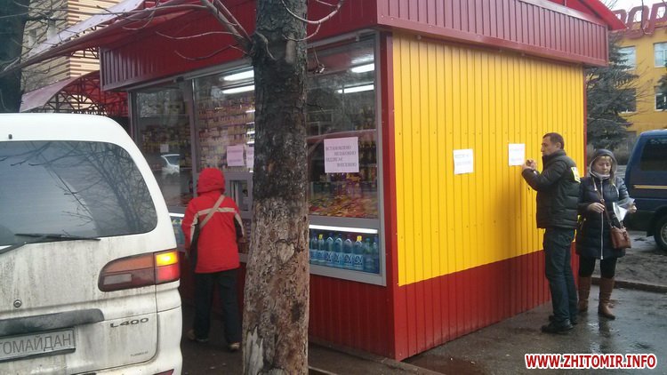 Около 20 человек вместе с заместителем начальника КП «Инспекция по благоустройству г.Житомира» сейчас находятся возле киоска и ждут, когда приедет спецтехника для демонтажа.