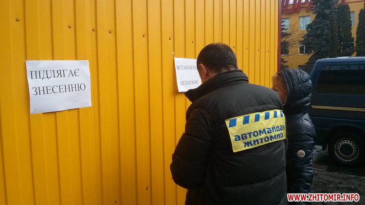 Утром 24 декабря в Житомире активисты решили демонтировать незаконно установленный киоск на ул.Витрука (остановка возле супермаркета «Фуршет»).
