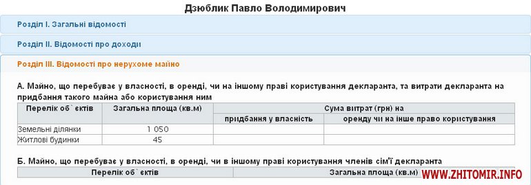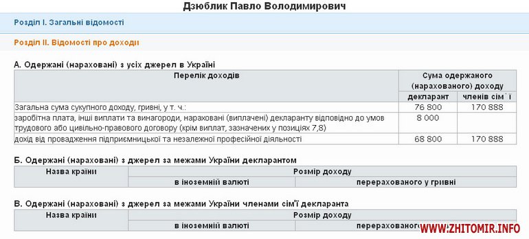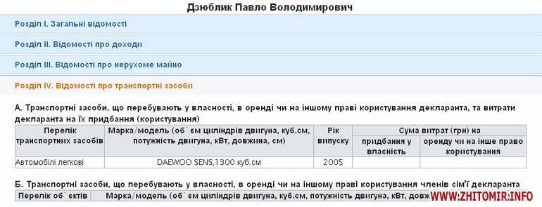 Народный депутат от Житомирской области (округ №66, Малин) Павел Дзюблик в прошлом году заработал 76,8 тыс.грн. и ездит на Daewoo.