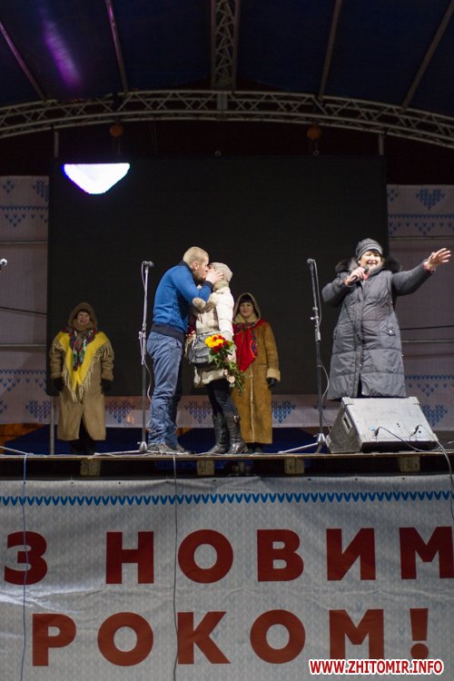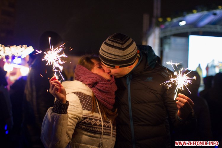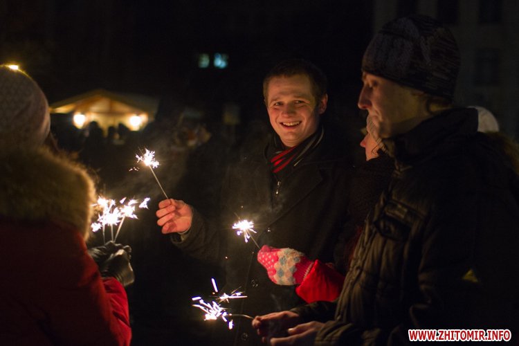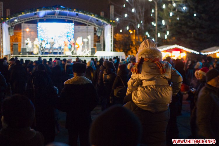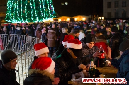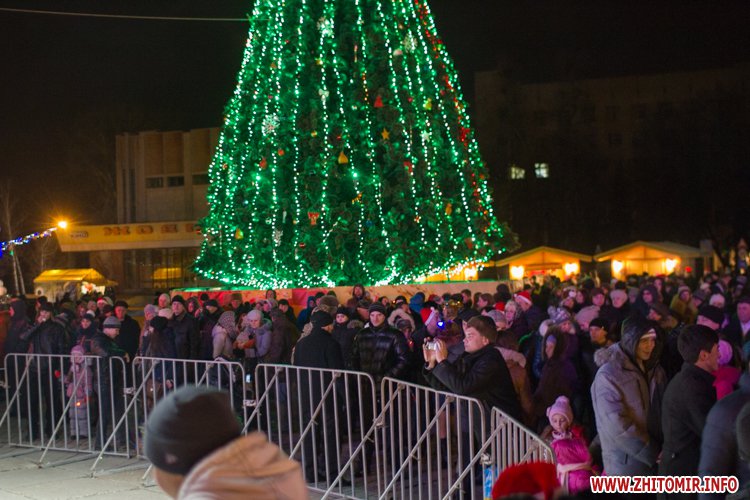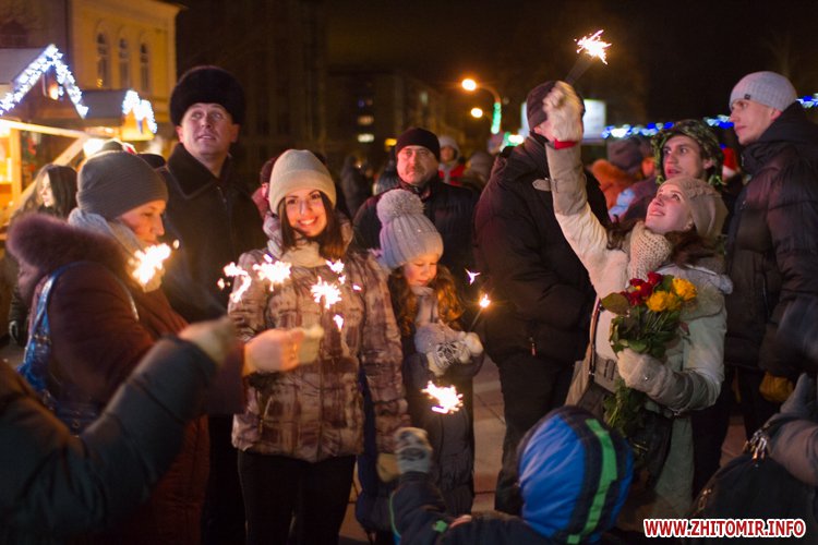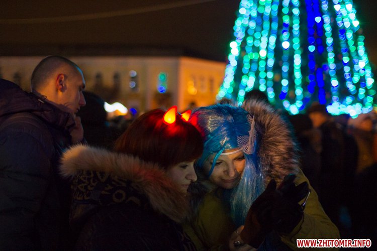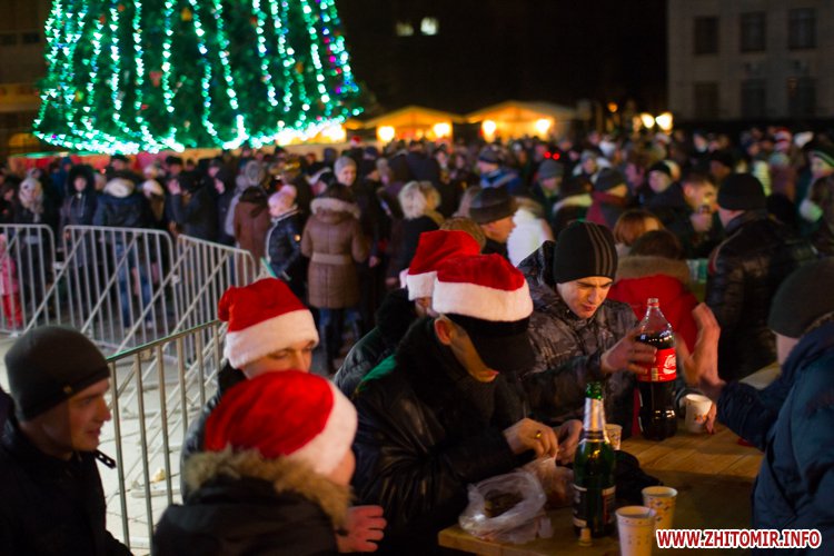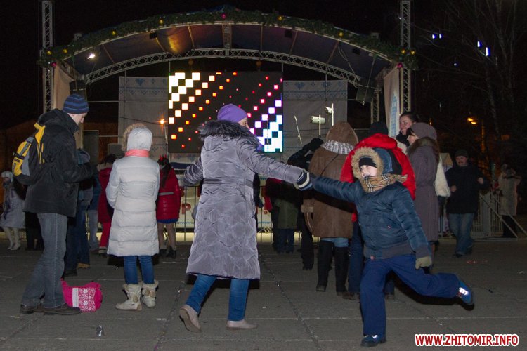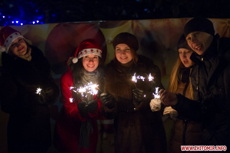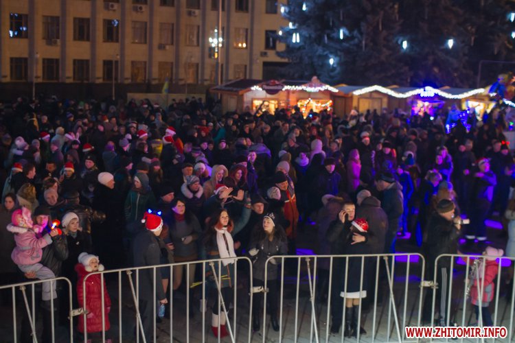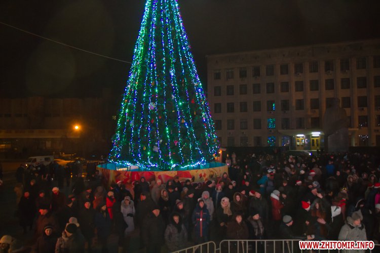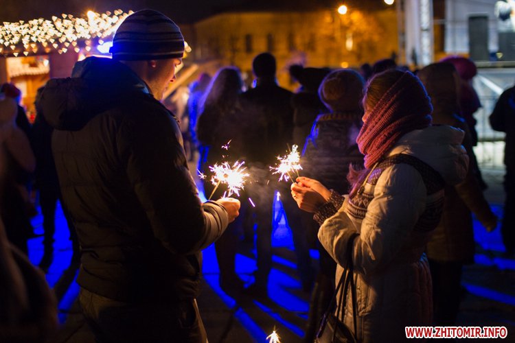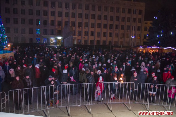 В новогоднюю ночь тысячи житомирян пришли на площадь Королева, к главной елке города.
