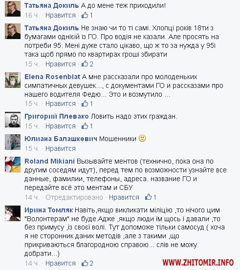 Волонтер из Житомира Татьяна Докиль в комментариях к посту написала, что к ней домой приходили с подобными просьбами молодые люди.
