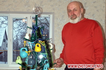 60-річний житель міста Новоград-Волинський Житомирської області Олександр Дідовець, гирьовик із 30-річним стажем, обвішав свою металеву ялинку справжніми гирями, пофарбованими у жовтий та блакитний кольори.