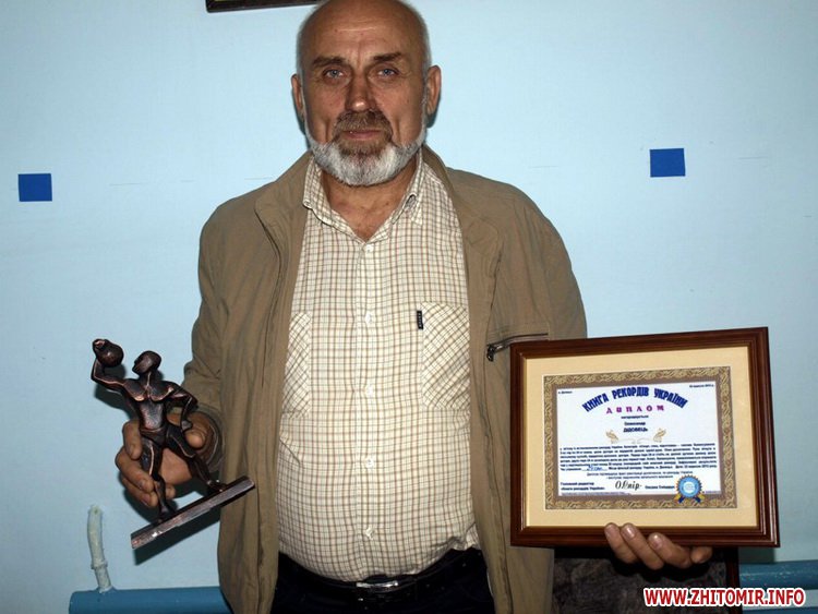 У світі гирьового спорту Олександр Дідовець зібрав, напевно, усі можливі нагороди. Здавалось би, лягайте, Олександре Миколайовичу, на диван і дивіться собі «Новорічний вогник», - жартують журналісти «Звягеля». Та важкоатлет знайшов застосування не лише колекції старовинних гир, але й величезним цвяхам, які скрутив у вигляді сердець і трикутників.