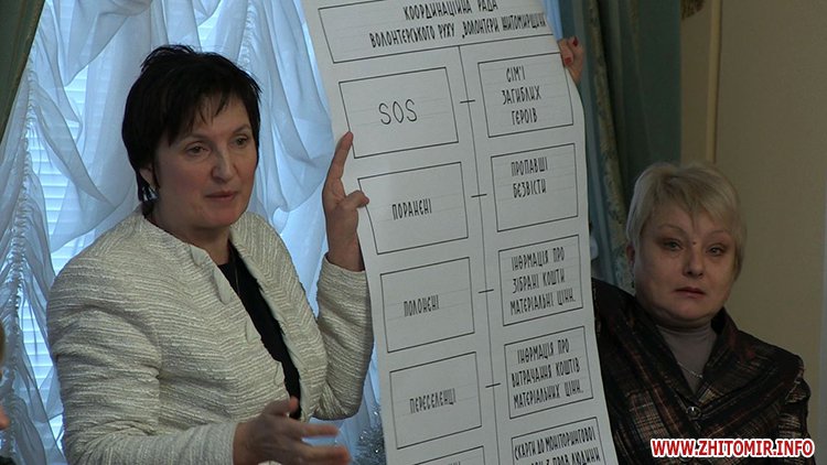 Учасники зустрічі вирішили, що до наглядової ради мають увійти представники військових частин, які дислокуються на Житомирщині та беруть активну участь в АТО, а також бійці добровольчих батальйонів. Для координації волонтерського руху на сайті облдержадміністрації вже створено відповідний розділ.