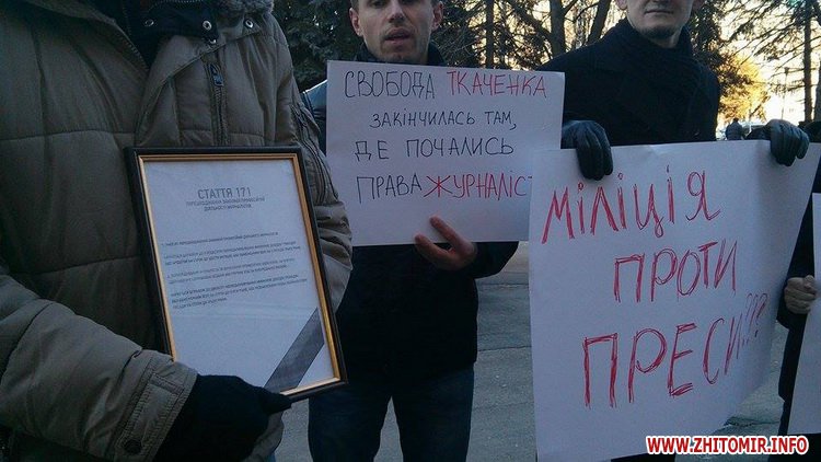14 января в Житомире журналисты пришли с плакатами к областному управлению МВД на Старом бульваре.