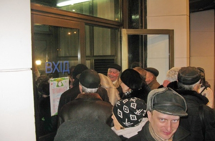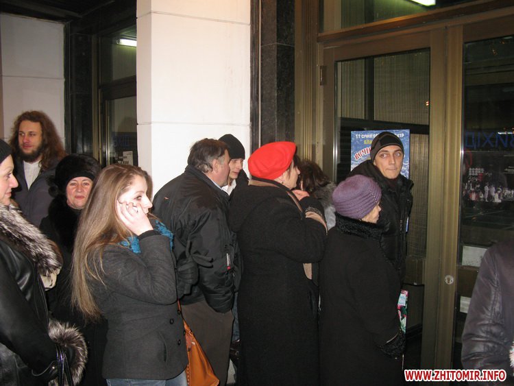 После безуспешных попыток попасть в зал большая часть почитателей таланта Владимира Шинкарука разошлись, оставшиеся - человек 20-30 – не оставляли надежду зайти внутрь, стучались в двери и требовали пропустить их. Кое-кто указывал на пустой ряд вешалок слева, доказывая, что места есть. Женщина, преподаватель музыки, приводила в пример недавно состоявшийся здесь же вечер колядок, когда часть зрителей расположилась в проходах. «Обещали, что на балконе места будут», - говорит она.