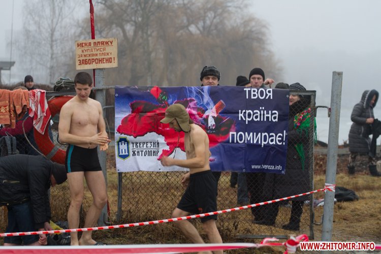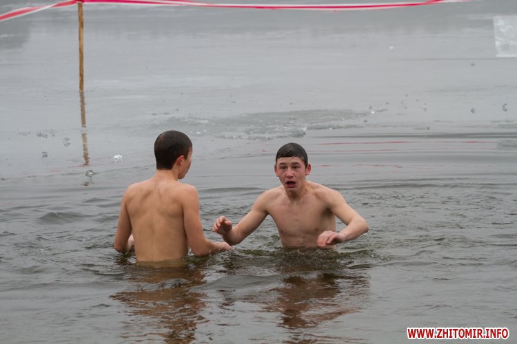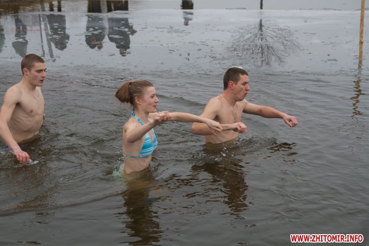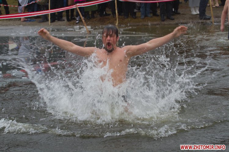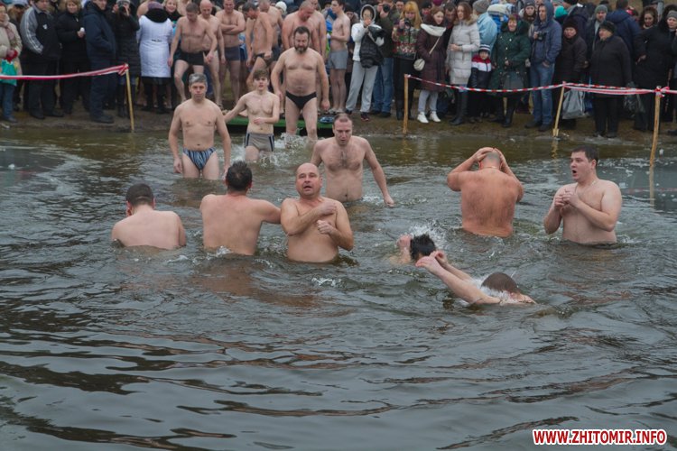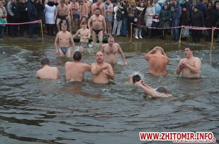 Спершу відбулось традиційне освячення води в річці Тетерів, після чого усі бажаючі змогли зануритися у крижану воду, яка за повір’ями у цей день має цілющу силу. Цьогоріч бажаючих пірнути в ополонку виявилось чимало.