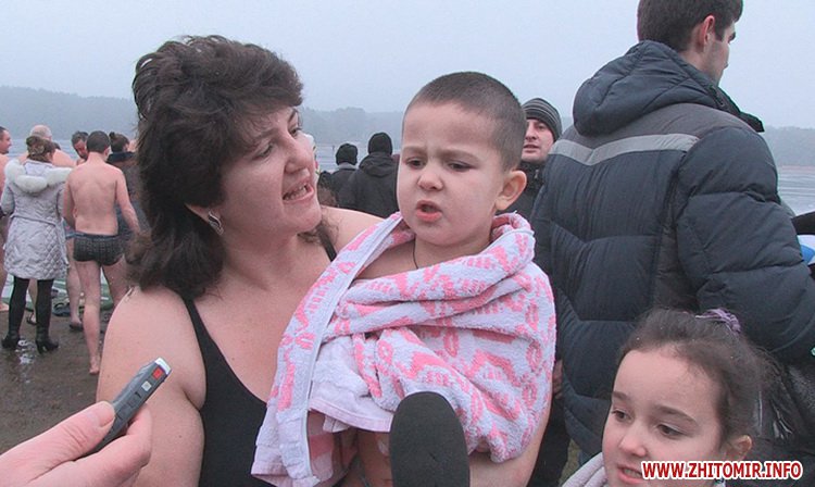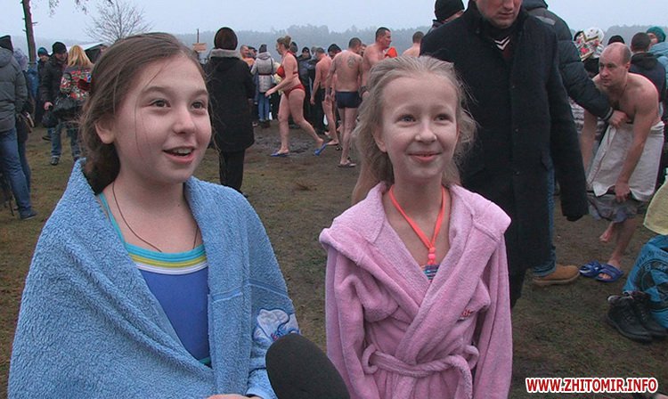 Люди почали купатись у річці Тетерів ще зранку, втім найбільше житомирян зібралось після того, як священнослужителі української православної церкви освятили воду о 10.00.