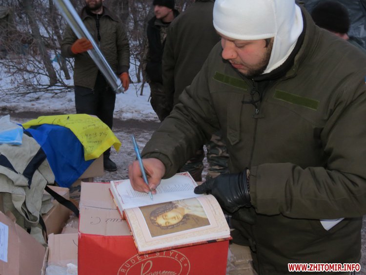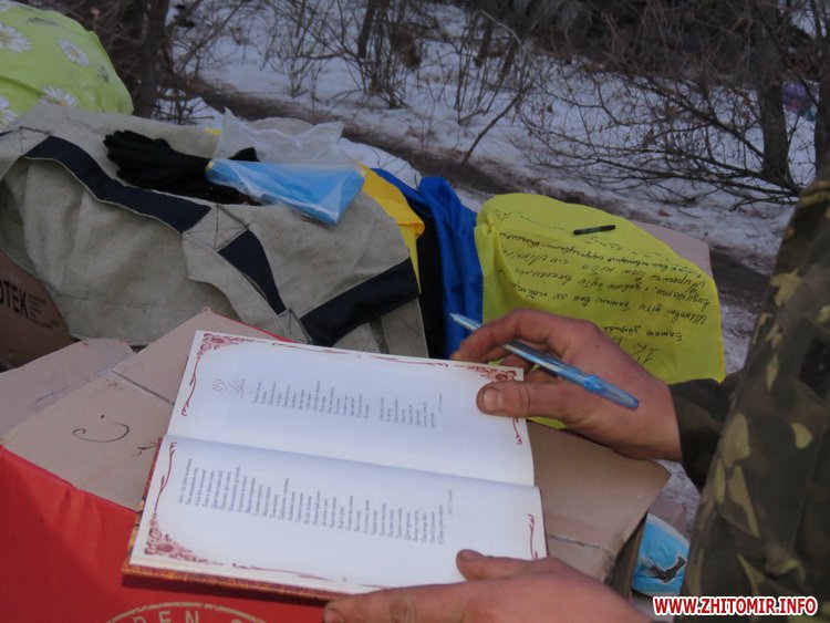 Отмечу также, что во время этой поездки начала реализовываться одна очень интересная инициатива от фонда Русланы Лыжичко, к которой мы присоединились. Суть инициативы: был приобретен дорогой экземпляр «Кобзаря», его передали нам, поскольку мы ездим в АТО, чтобы ребята-военнослужащие на любой страничке написали пожелание Украине, дальше этот «Кобзарь» пойдет по всему миру, и люди будут писать пожелания для Украины, закончит он свое шествие где-то в Америке.