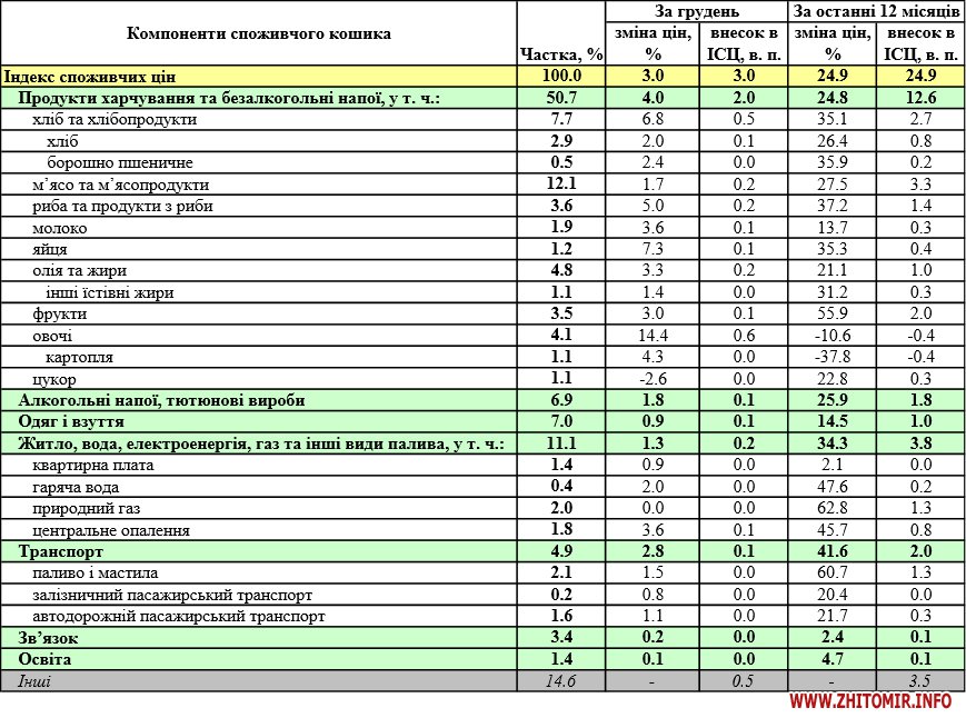 Уперше за останні чотири роки відбулося зростання цін на сирі продукти харчування (на 22.3%; 6.3 в.п. – внесок в інфляцію), зокрема через подорожчання їх імпорту, а також у наслідок збільшення витрат на вітчизняне виробництво (у листопаді витрати на виробництво сільськогосподарської продукції зросли на 37% у річному вимірі).
