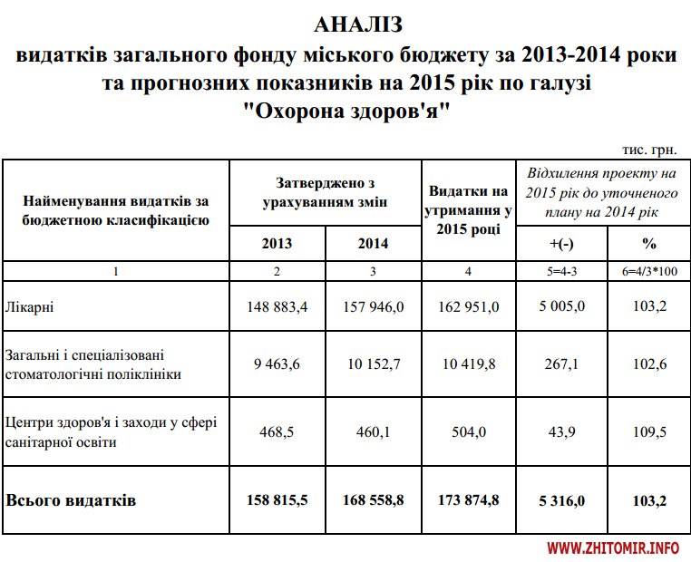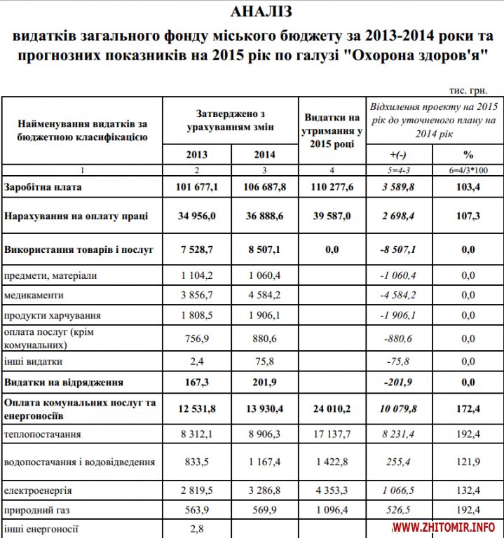 В проекті міського бюджету Житомира на 2015 рік по галузі «Охорона здоров’я» в повному обсязі забезпечена потреба в коштах на проведення розрахунків за спожиті енергоносії та частково забезпечені видатки на оплату праці.