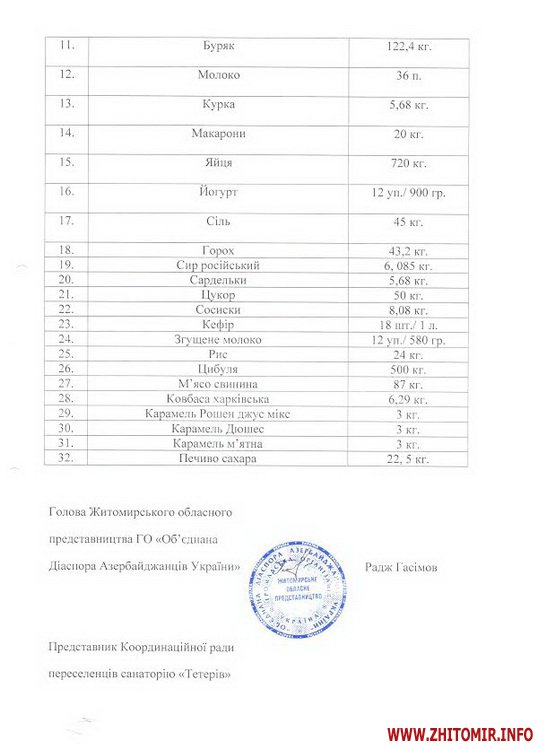 «Привезли овочі, фрукти, продукти харчування. Все, що нас попросили, усе привезли», - розповідає представник Азербайджанської діаспори Радж Гасімов.