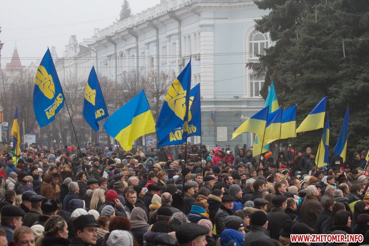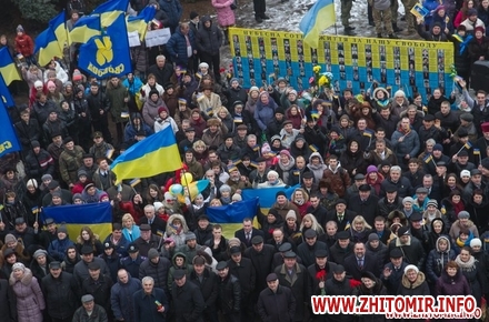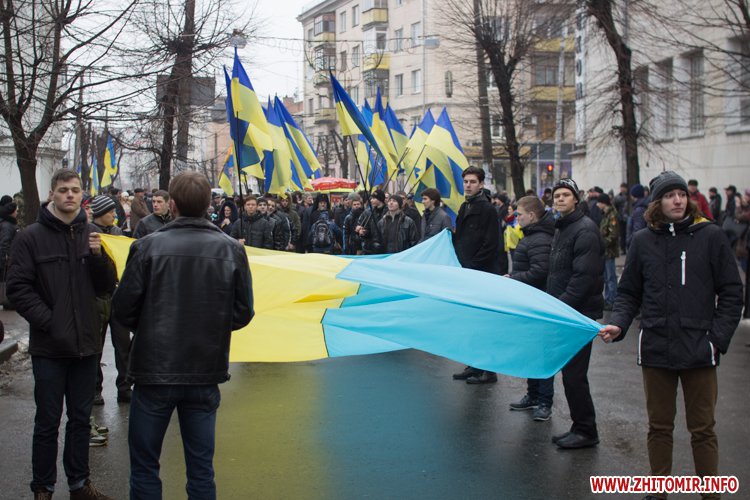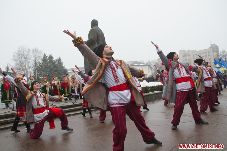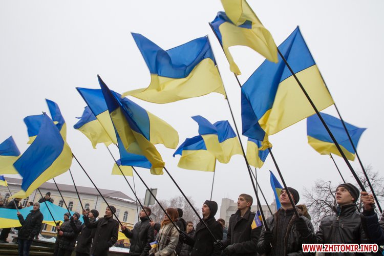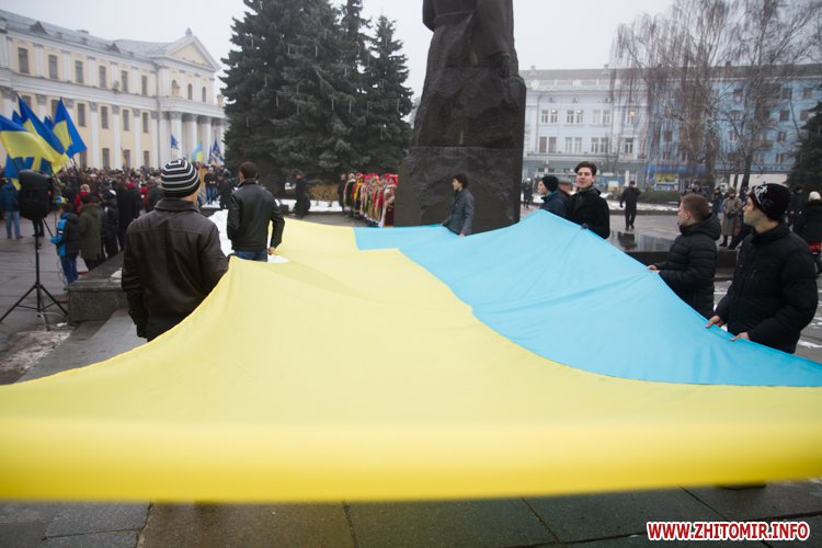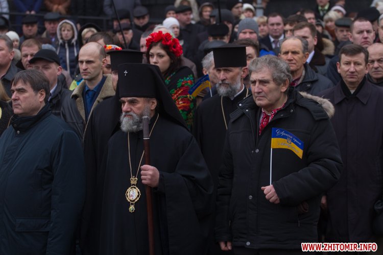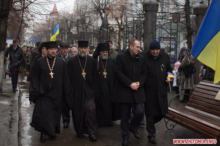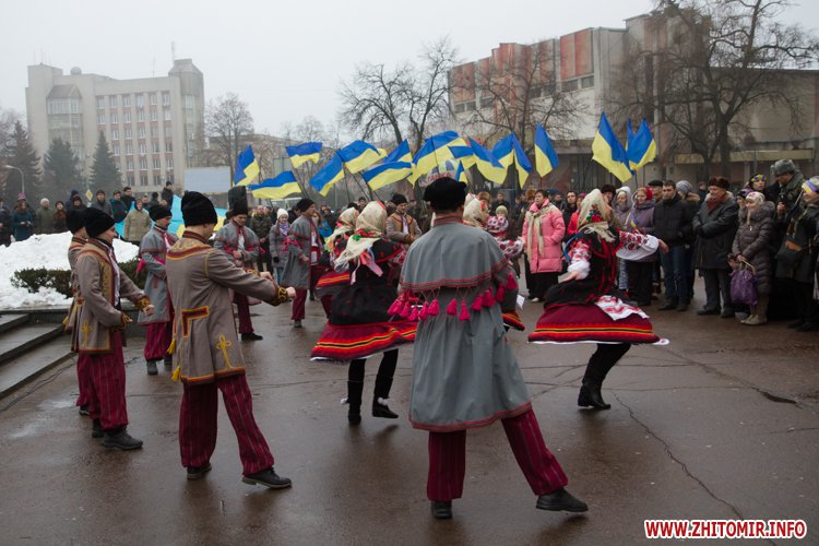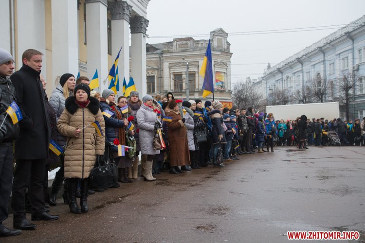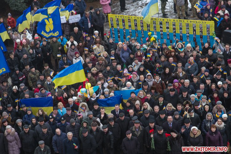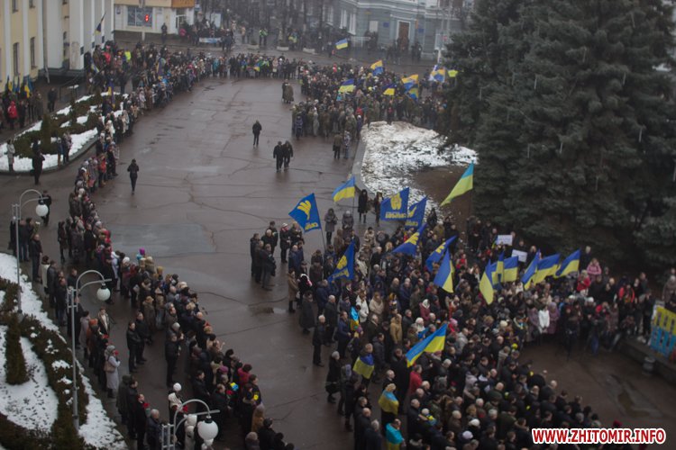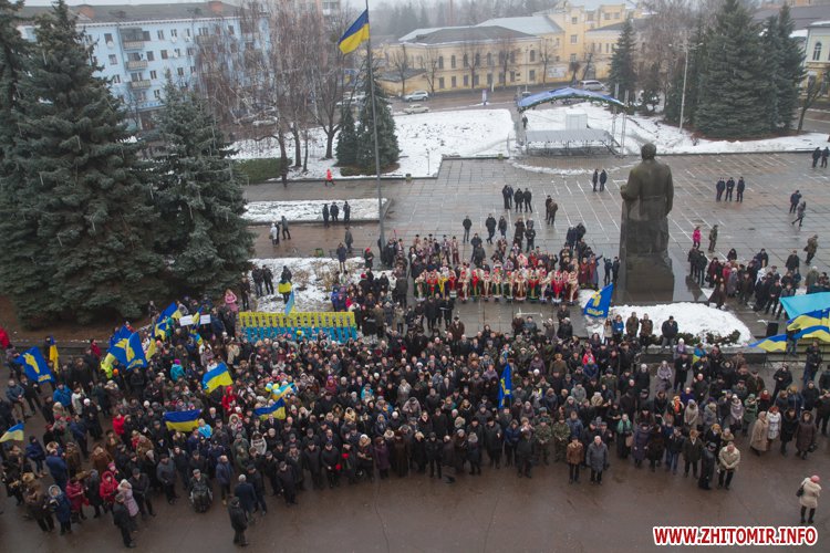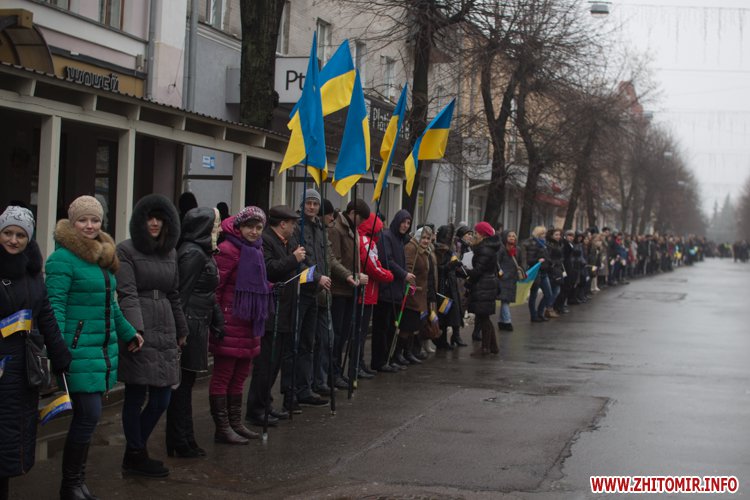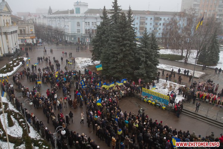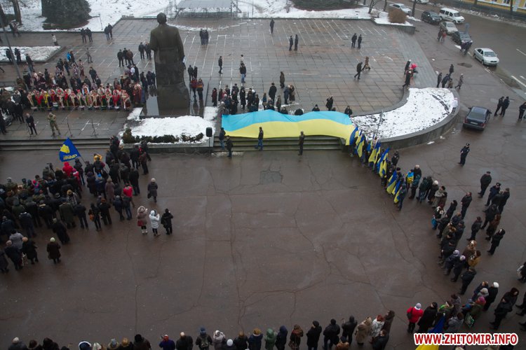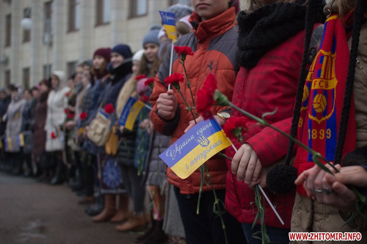 У День Соборності України, 22 січня, кілька тисяч людей долучилися до акції «Живий ланцюг єдності». Тримаючись за руки, люди з'єднали два меморіали Небесної сотні: від Свято-Михайлівського кафедрального собору через вулицю Михайлівську до пам'ятної дошки на майдані Корольова.
