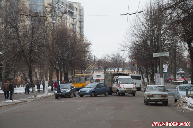 28 января в Житомире из-за двух столкнувшихся автомобилей было заблокировано движение троллейбусов по ул.Победы в сторону центра города.