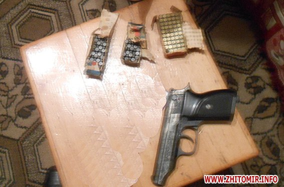 У ході профілактичних заходів під умовною назвою «Візит» в оселі немолодих мешканців одного з сіл Бердичівського району Житомирської області правоохоронці вилучили пістолет 9-го калібру та близько півтори сотні набоїв.