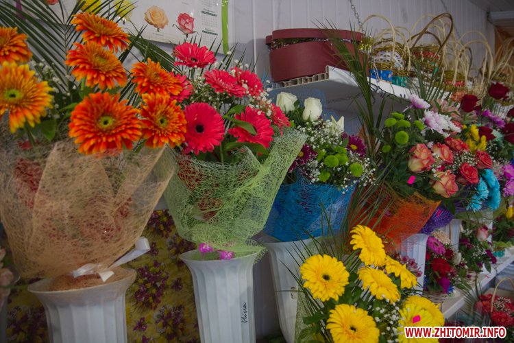 Живые цветы продают во многих точках города, только в центральной его части Житомир.info насчитал около десяти цветочных магазинов и павильонов. В некоторых местах цветы продают и под открытым небом, как, например, на площади Победы или в районе рынка на улице Небесной Сотни.