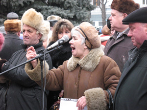 Секретарь Житомирского обкома КПУ Зинаида Стрякина призвала участников митинга осудить действия Президента Виктора Ющенко, премьер – министра Юлии Тимошенко, и спикера Верховной Рады Арсения Яценюка, которые подписали письмо с просьбой о присоединении к Плану действий по членству в НАТО.