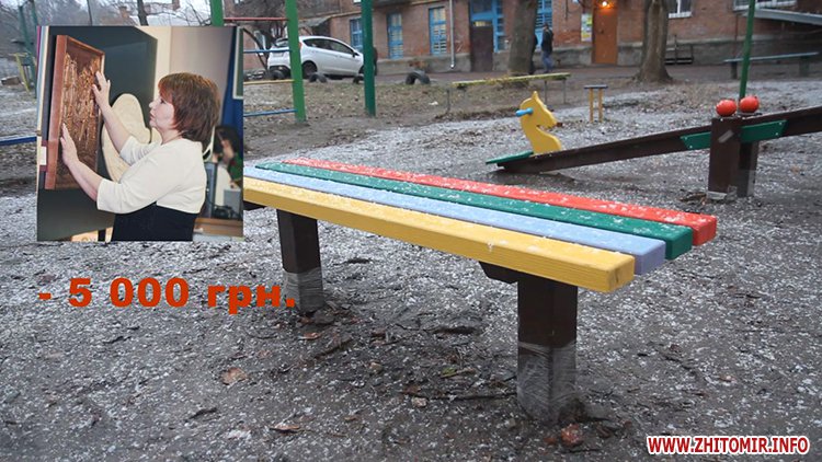 Рекордні 20 тис. грн. віддав за облаштування майданчика Володимир Михалець: кольорова гірка, лавка і гойдалка знаходяться на Київській, 96.