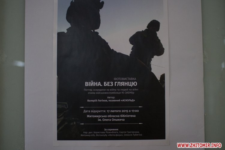 17 февраля в Житомире открылась фотовыставка офицера 95-й отдельной аэромобильной бригады Валерия Логинова (позывной «Аскольд»).