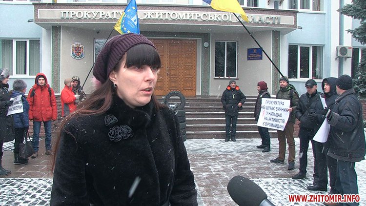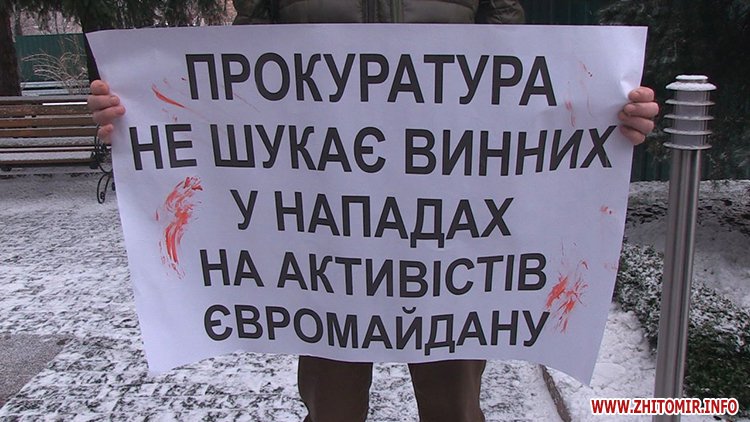 Вимагати знайти та покарати винних у переслідуванні учасників житомирського Євромайдану під стіни обласної прокуратури прийшли активісти громадської організації «Рух Автомайдан Житомир». Люди обурені - за рік працівники прокуратури не знайшли винних у побитті та псуванні майна житомирських майданівців.