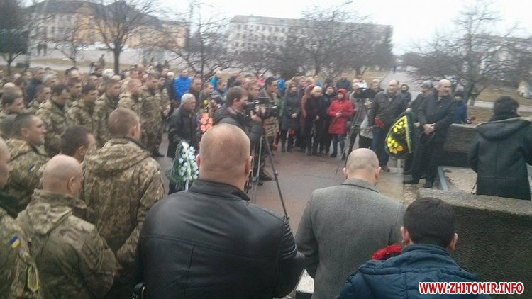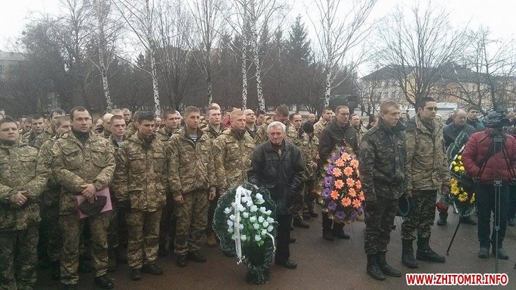 3 марта в Житомире, в воинской части на Корбутовке, прощаются с погибшим 26 февраля возле Донецкого аэропорта снайпером 90-го батальона 81-й десантно-штурмовой бригады Владимиром Гнатюком.