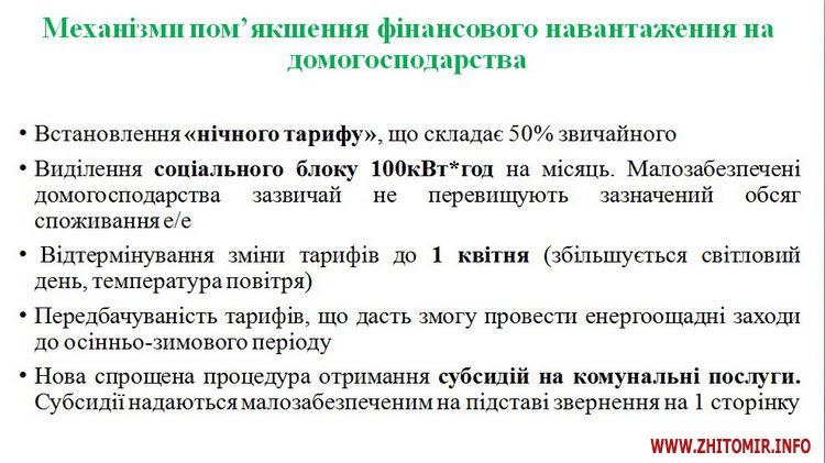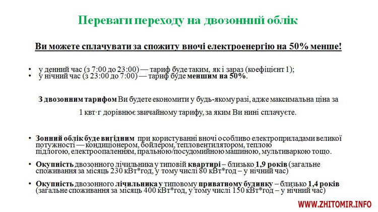 Крім того, комісія прийняла рішення щодо зменшення нічного коефіцієнта до 0,5 для стимулювання населення використовувати електроенергію в нічний період.