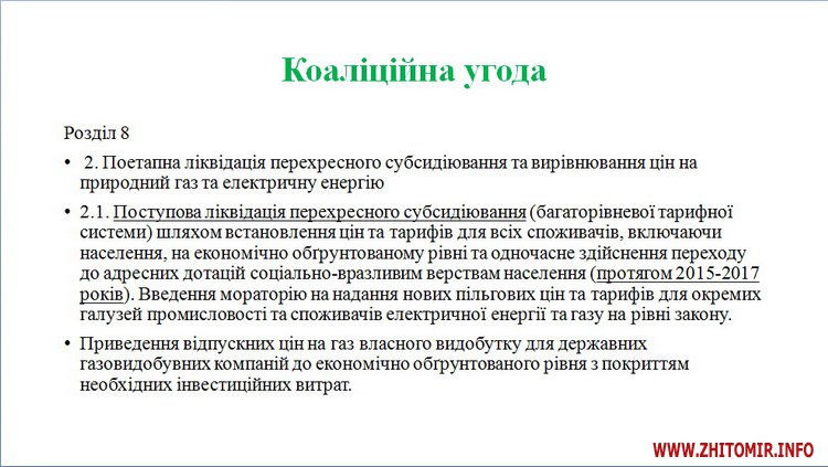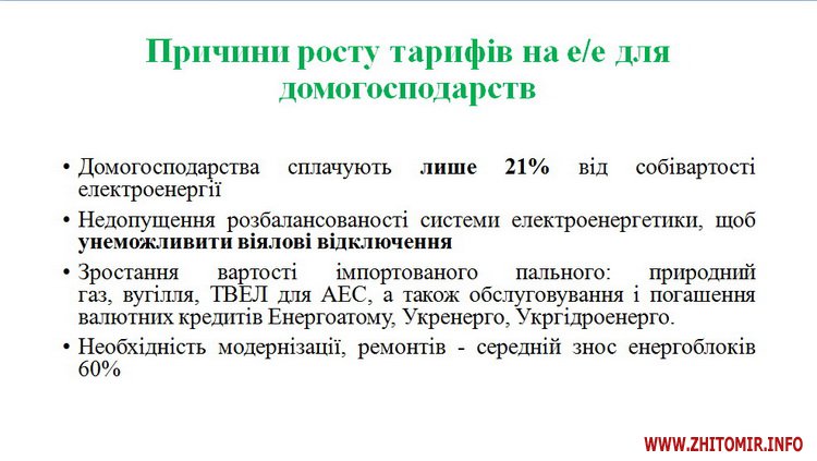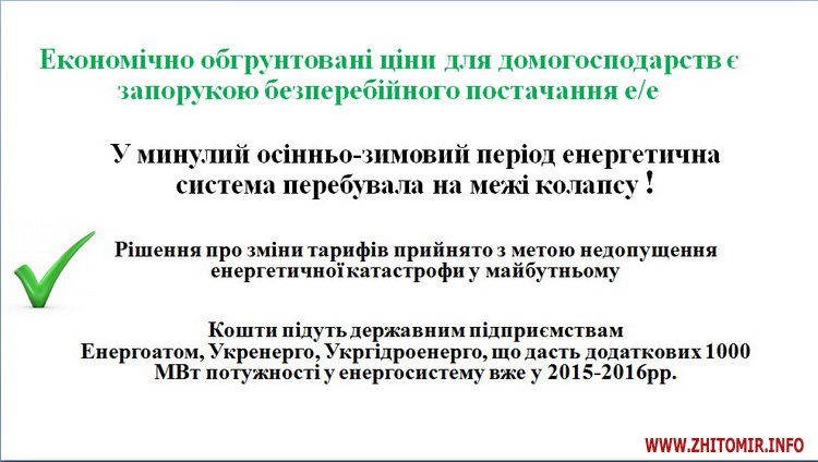 З урахуванням вимог Коаліційної угоди, укладеної учасниками коаліції депутатських фракцій Верховної Ради України VIII скликання, та з метою ліквідації перехресного субсидування населення за рахунок інших споживачів Національна комісія, що здійснює державне регулювання у сферах енергетики та комунальних послуг, прийняла рішення щодо поетапного підвищення тарифів на електроенергію, яка відпускається населенню.