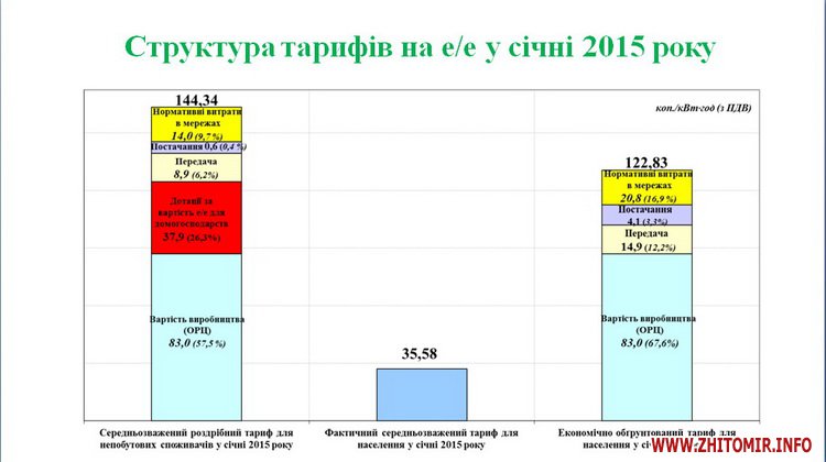 Прес-служба Нацкомісії повідомляє, що станом на 1 січня 2015 року населення оплачує лише 21,3 % фактичних витрат на виробництво, передачу та постачання електричної енергії. У зв’язку з цим роздрібні тарифи на електричну енергію для непобутових споживачів України є фактично завищеними, внаслідок чого постійно збільшується кінцева ціна на всі їх товари та послуги (більшість продуктів харчування, промислових виробів, побутових та інших послуг, у яких питома вага електроенергії займає значну частку).
