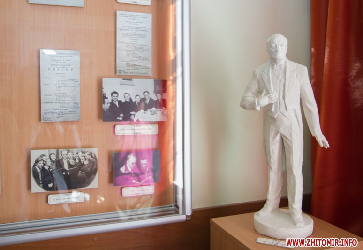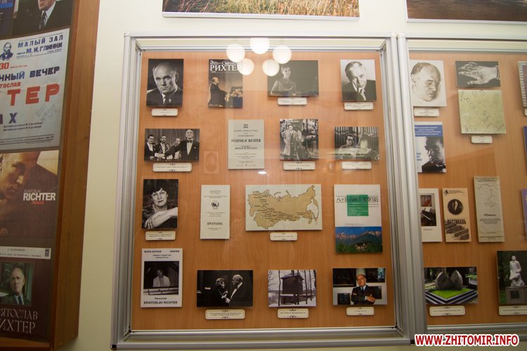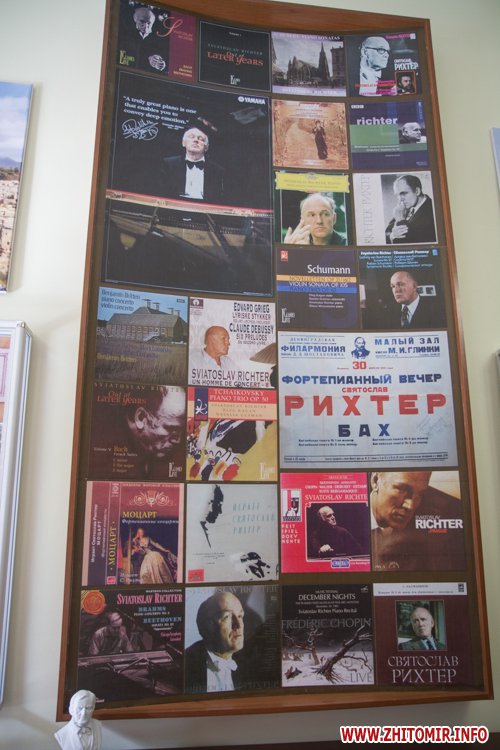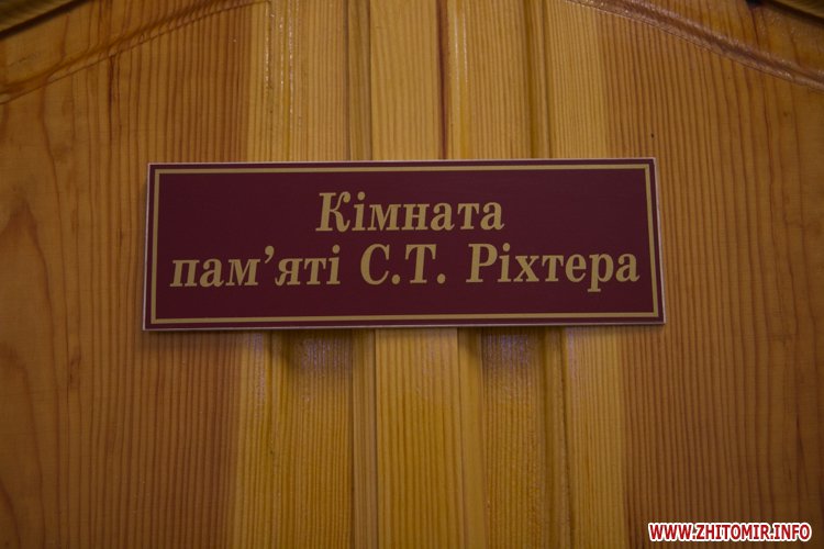 Як розповіла директор музичної школи Людмила Кочевенко, більше 20 років у закладі збирали цінні документи, а в 2000 році тут нарешті відкрилася експозиція, присвячена Святославу Ріхтеру. Після того, як у 2010 році заклад отримав ім’я видатного піаніста, в музичній школі розпочали посилено працювати над тим, аби вшанувати на належному рівні нашого земляка. А 5 березня жителям та гостям міста Житомира провели першу екскурсію в кімнаті пам’яті, де зберігаються унікальні експонати: сорочка, краватка, шарф, туфлі, окуляри, портмоне піаніста і навіть колекція фотографій, які Святослав Ріхтер робив особисто, а також платівки з його підписом та оригінальні записи творів музиканта. До речі, приміщення школи збудоване ще в 1904 році, і його стіни пам’ятають оперну співачку Зою Гайдай, композитора Олександра Білаша, диригента Вадима Гнєдиша та інших відомих діячів культури.
