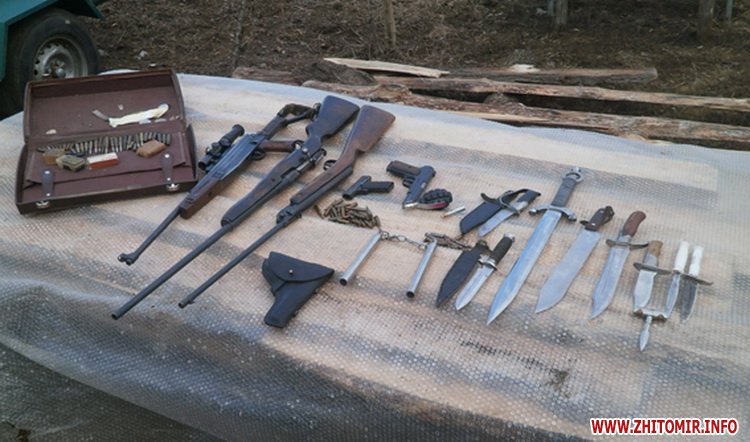 Арсенал оружия, обнаруженный милиционерами в Чудновском районе, поражает разнообразием видов огнестрельного и холодного оружия, а также значительным запасом патронов. 64-летний пенсионер хранил в своем доме и гараже винтовку, пистолеты, ножи, меч, гранату с запалом, более 120 разнокалиберных патронов и взрывчатку.