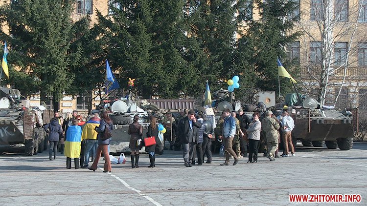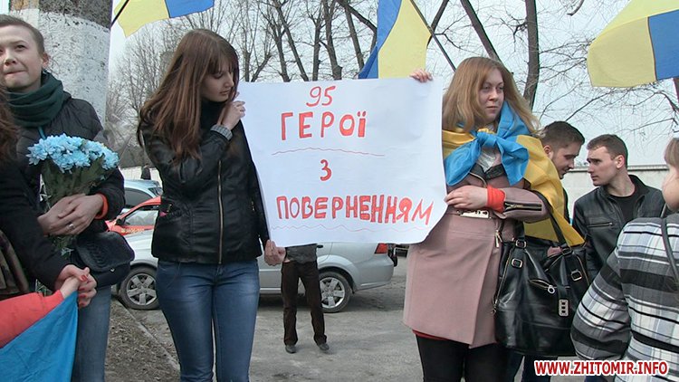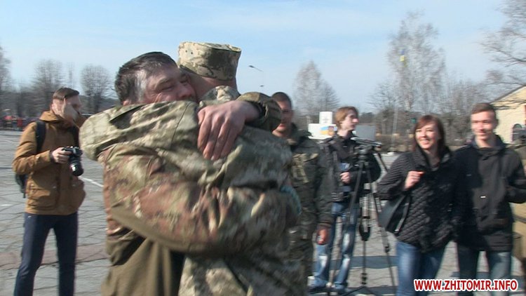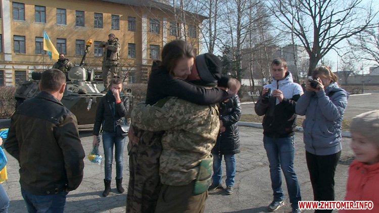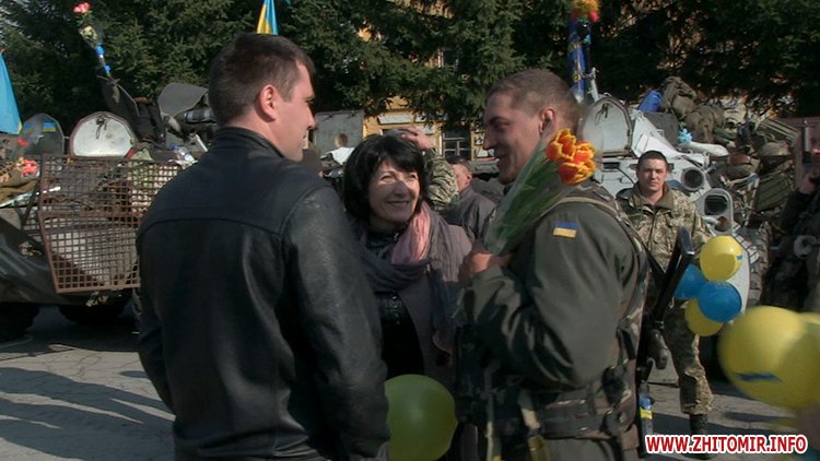 З прапорами, квітами і повітряними кульками житомиряни зустріли легендарних «кіборгів» 95-ї бригади, які приїхали на ротацію. Після року в АТО додому повернулось близько сотні бійців. Щоб зустріти героїв, які пройшли горнило війни і героїчно тримали Донецький аеропорт, вийшли сотні людей. Весь день вони чекали біля військової частини. Колону з бійцями 2-го батальйону люди зустріли вигуками «Герої!».