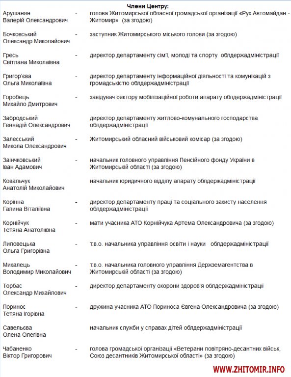 Нижче – повний список членів Центру допомоги учасникам АТО.