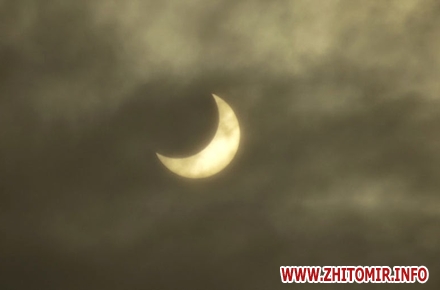 «На екрані, який буде встановлений у внутрішньому дворі ЖДУ імені Івана Франка, буде транслюватися зображення із потужного великого телескопа. Там же стоятиме й два менших телескопа, скористатися якими зможе кожен бажаючий. Спостерігати за повним сонячним затемненням можна буде з 11:15 і майже до 13:30, але за сонячної погоди. Хоча це затемнення за астрономічною класифікацією належить до повних, з України буде видно, як Місяць затуляє лише близько половини сонячного диска. За розрахунками о 12:06 у Житомирі ми спостерігатимемо сонце, диск якого буде затемнено на 52%. Цього явно недостатньо, щоб настали сутінки. Тому затемнення можна пропустити, якщо спеціально за ним не спостерігати. На цей день майже по всій території країни синоптики прогнозують хмари і дощі, а це може завадити спостереженню. У Житомирі ж, за попередньою інформацією, має бути сонячно. Сподіваємося, що прогноз не зміниться, і ми будемо спостерігати зображення «надкушеного» сонячного диска. Свідки ж повної фази затемнення, зможуть побачити, як на потемнілому серед дня небі на кілька хвилин проступлять зорі. Проте вони це побачать, якщо небо буде безхмарним», – каже завідувач кафедри фізики ЖДУ імені Івана Франка Олександр Ткаченко.
