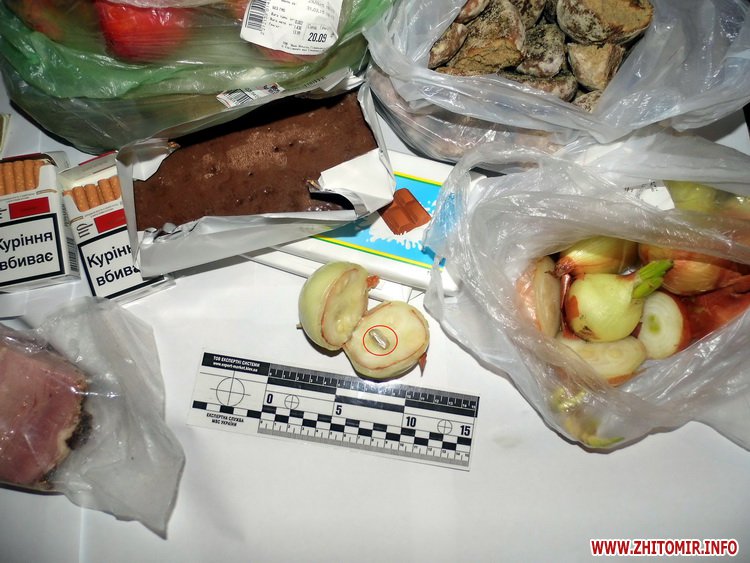 30 марта во время осмотра продуктовой передачи для осужденного Ц. в разрезанной луковице работники Житомирского учреждения исполнения наказаний №8 обнаружили небольшой сверток в крепко запаянном полиэтилене. Изъятый пакет с подозрительным веществом был передан для дальнейшей экспертизы.