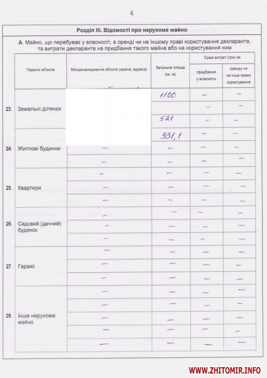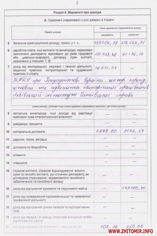 Декларация чиновника обнародована на сайте облгосадминистрации.