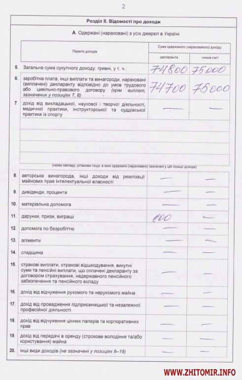 Как сообщал Житомир.info, первый заместитель губернатора Житомирской области Геннадий Дмитренко за 2014 год заработал 153 тыс.грн.