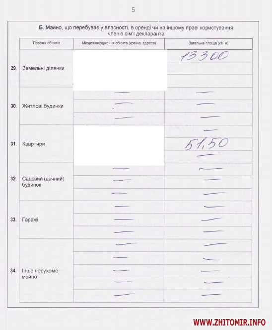 У заместителя председателя-руководителя аппарата Житомирской облгосадминистрации Вячеслава Полищука есть гектар земли и два автомобиля.