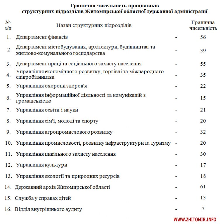 Нагадаємо, голова Житомирської ОДА Сергій Машковський обіцяв до 1 березня представити «чітку оновлену структуру облдержадміністрації в розрізі кожного департаменту» та анонсував скорочення штатної чисельності департаментів на 40%.