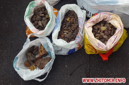 На место происшествия прибыла следственно-оперативная группа Новоград-Волынского горотдела милиции. Правоохранители осмотрели автомобиль и обнаружили в его багажнике несколько пакетов с камнями, внешне похожими на сырец янтаря.