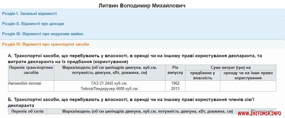 В собственности нардепа два автомобиля – ГАЗ-21 1962 г.в. и Toyota Land Cruiser 2013 года выпуска.