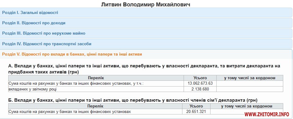 У его жены на банковских счетах – 20 млн. 651 тыс. 321 грн. (в 2013 году было 11 млн. 68 тыс. 432 грн.).