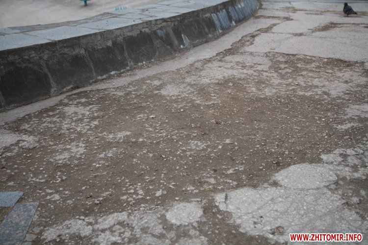 «У нас покриття знаходиться в неналежному стані. Ввечері приходять люди, які видирають (металеві) пластини і розрушується повністю вся підлога, тому загальна проблема є по всій території. Як сьогодні Любов Володимирівна сказала, будуть виділяти кошти, шукати, щоб зробити реконструкцію цього фонтану, аби діти могли не спотикатися, носи не розбивати і взуття не портити», - каже активіст Роман Кратюк.